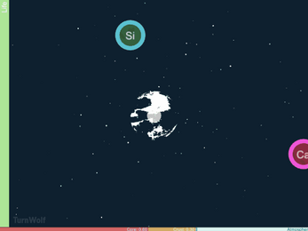 Concept: Crash asteroids into your planet and watch as the element which is signified in its element symbol makes a change to your planet. Experiment to find out what element does what.